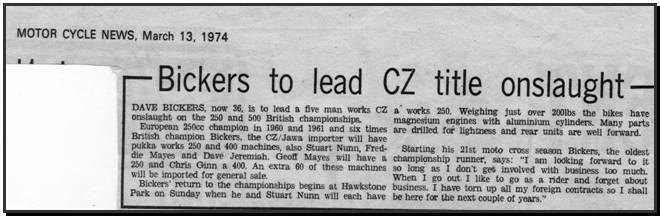 used only by supported riders, Dave Bickers, Stewart Nunn, Freddie Mayes, Dave